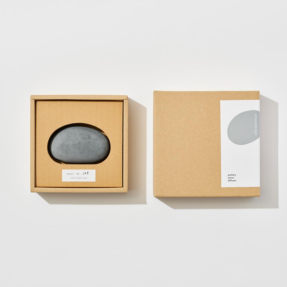 海辺から石を持ち帰って並べたかのように、家の中に自然の一部を感じさせてくれて、それが香りをまとい、放つ。オイルが石に落ち流れるさまを眺めているだけでも、心地よいものです。静かな佇まいで、部屋の気配をそっと変えてくれる。香りのスイッチとなるオブジェです。